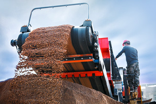 物料經過給料機可以均勻的輸送到顎式破碎機內部,經過初次的破碎后,物料經輸送機送入反擊破二次破碎,經過破碎后輸出送入振動篩,滿足破碎要求的物料可經過輸送機輸出不滿足要求的物料再次返回破碎。整個加工流程是一條完整的生產線,可以實現物料的循環破碎,達到客戶的生產要求。
